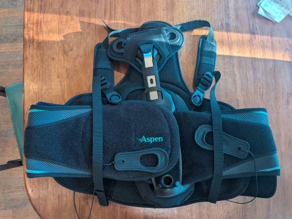 Excellent condition. This brace was used a couple of times. It's the Aspen Vista TLSO. Delivery to Corvallis or Newport is possible. https://www.aspenmp.com/products/vista-464-tlso