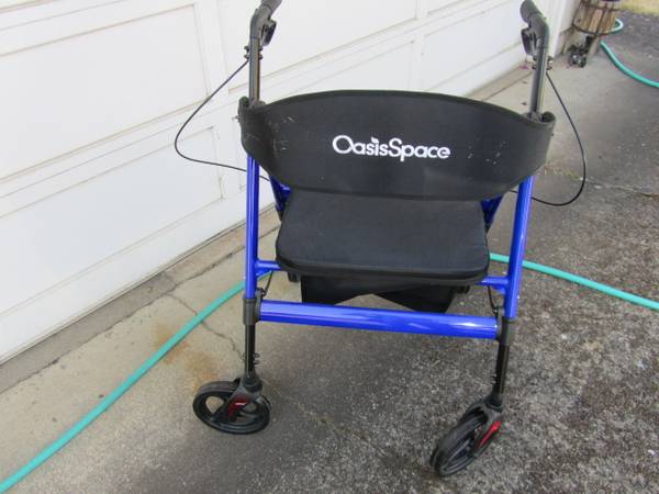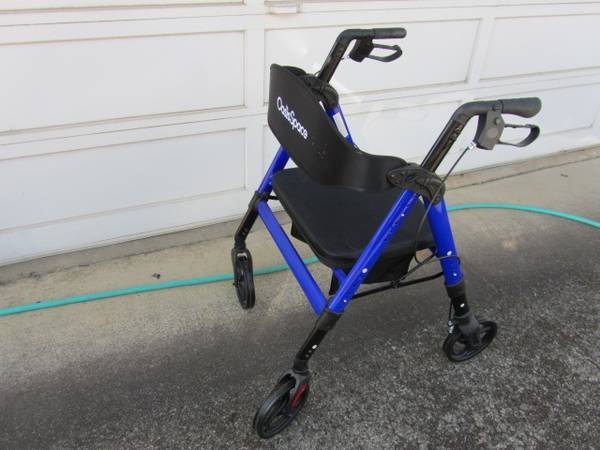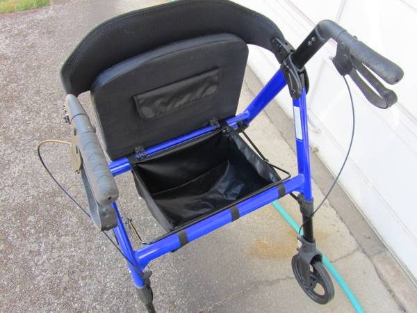 THIS WALKER IS LIKE NEW AND HAS A WIDE SEAT. IT HAS A 450 POUND RATING. IT IS FULLY ADJUSTABLE AND HAS BRAKES AND UNDER SEAT STORAGE. IT HAS LARGE WHEELS FOR OUTDOOR USE. $90 CASH PHONE CALLS ONLY