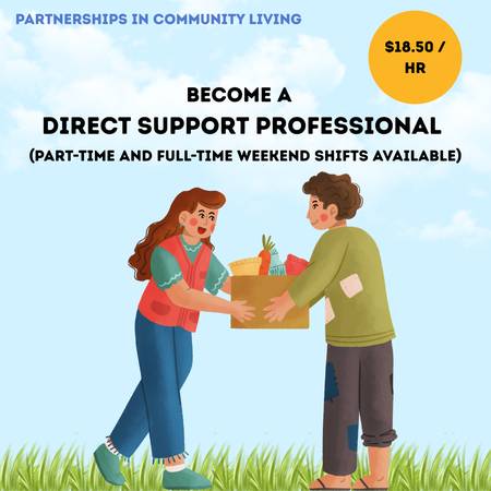 Description: Direct Support Professionals (DSP) support people who experience intellectual and developmental disabilities in their own homes and communities. DSPs provide the supports people need to live self-directed lives, including caregiver supports like food prep, personal care, and following support plans. In this position, you support someone to go out and have fun, maintain their home, plan meals, cook, follow personal health routines, and achieve their dreams!