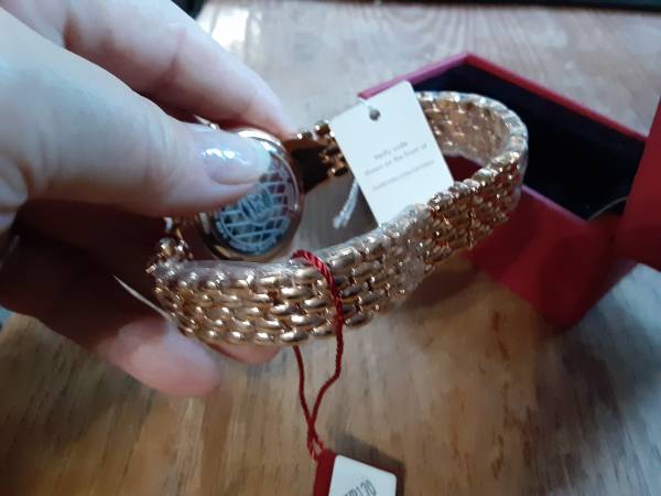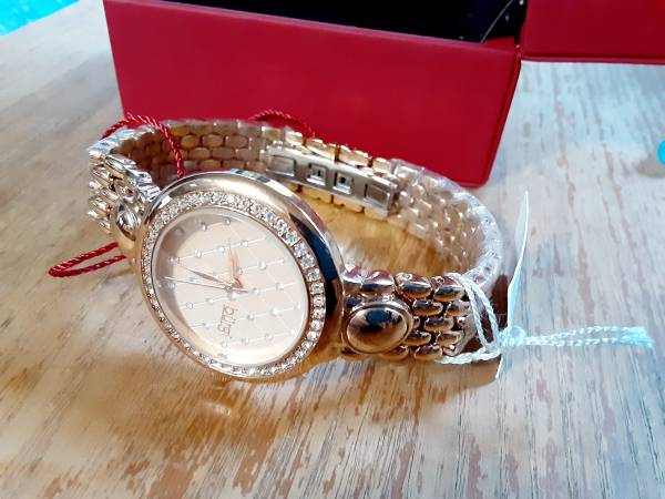 New in box with tags. Perfect gift for the upcoming holiday. Rose gold tone round case watch with Swarovski Crystals on Rose Gold Tone link bracelet and Argyle Crystal pattern. Pictures do not do it justice. Just beautiful. Check out my other items up for sale.