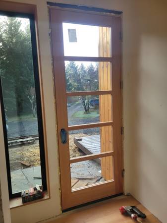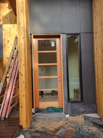 New 8'x3' Fir entry door slab. This door was installed and the customer did not like it. It is also professionally clear-coated/finished and ready to use.
