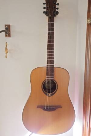 LAG T200 Dreadnought Acoustic guitar. Solid cedar top. Original owner - purchased new from the old Gracewinds music shop. Comes with SKB hard case. $350.00