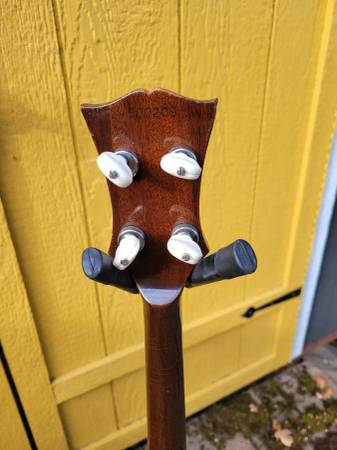 Vintage 1965 Gibson RB-100 Banjo, that is in really great condition. Great action, plays nice, sounds awesome. This is a great vintage banjo for a mix of bluegrass and old time finger style playing. At some point the custom inlay pattern was done on the neck, which was originally the dot inlay.