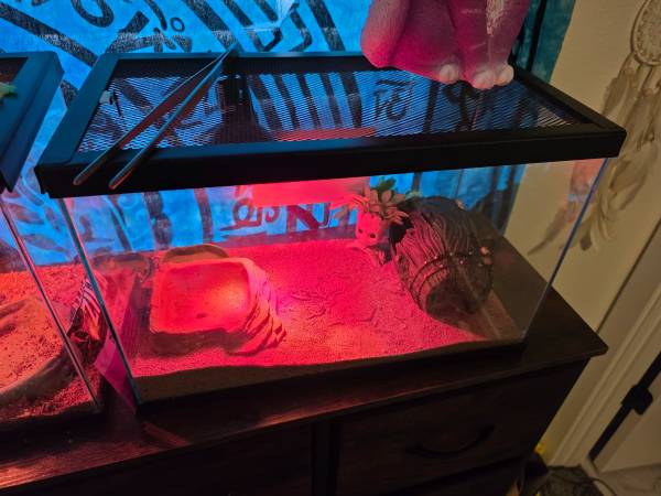 Five gallon tank. Two bowls. Two decorations. Gecko. One hundred for everything.