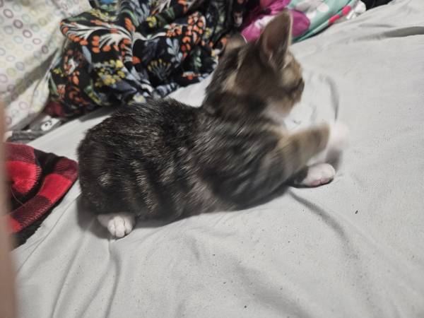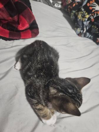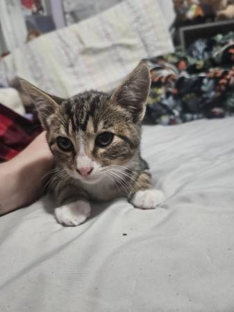 This girl was dumped on our road. She's nice and healthy now. Used to kids and dogs. She loves bell toys and a good soft blanket. She's the best of both worlds playfully and cuddly. Sadly was cant...