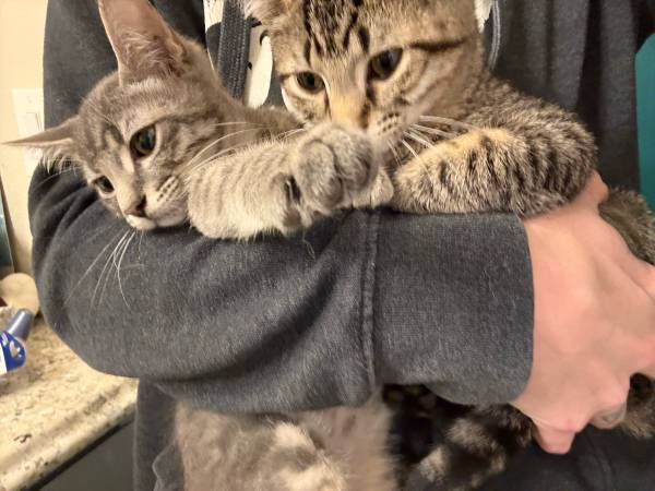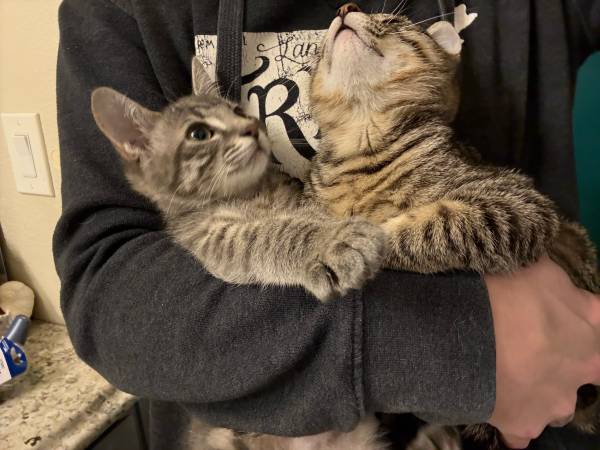 Two males kittens ready for their new home. Free to good home. Would love to see them go together but willing to separate them.
