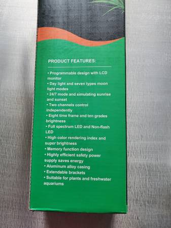 - Hygger Auto On Off LED Aquarium Light Extendable Dimable 7 Colors Full Spectrum Light for Freshwater Planted Tank Build in Timer Sunrise Sunset (purchased February 2025)