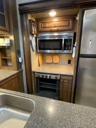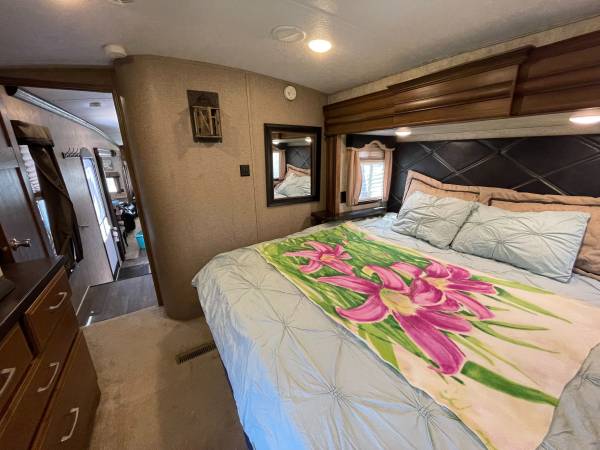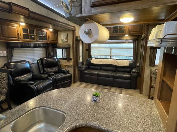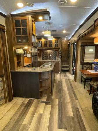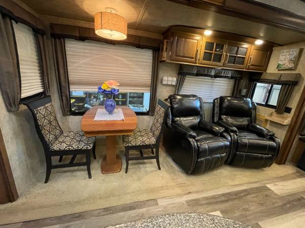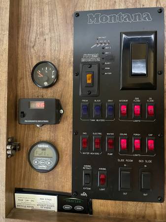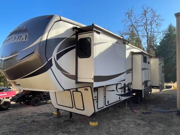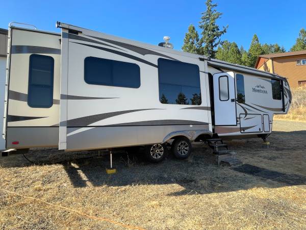 Clean and ready for adventure or to live in, this beautiful and spacious Montana 5th Wheel 3440 RL is just what youre looking for. Its loaded with extras: 3 Solar panels that continuously charge the Brand New Epoch Lithium battery, with a new Victron solar charging system for off-grid. Plus an 8,000 watt diesel generator, with a 30 gal diesel fuel tank, making it perfect for off grid glamping or living. Winegard Traveler satellite dish with auto locater, completely wired for satellite or cable TV in both living room and bedroom. 4 slide-outs, Auto leveling, Living room fan/light, Air Conditioning and heat in all rooms. CD and DVD player, AM/FM stereo plus a sound bar. Electric fireplace. High Pointe microwave/convection oven. Double-door full size RV refrigerator/freezer. Living room couch folds into bed. King size bed in bedroom w/storage underneath, and full closet with utilities for laundry hookup. Slide toppers on all 4 Slide-outs. Has large awning, new flooring and is completely winterized. (Cashier's check only from your bank accepted)