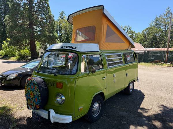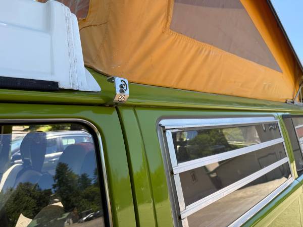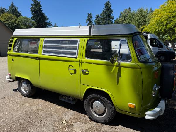 'Rita (short for Marguerita, for the color) is a 1976 VW Westfalia Pop-up Camper. We're the 3rd owners and she has always been garaged. Only 83,200 miles! She's been well-maintained at NoName in Eugene by the previous owners, and then Independent Auto Werks (formerly BugWerks) here in Corvallis. All maintenance records available.