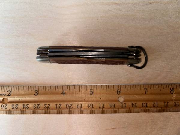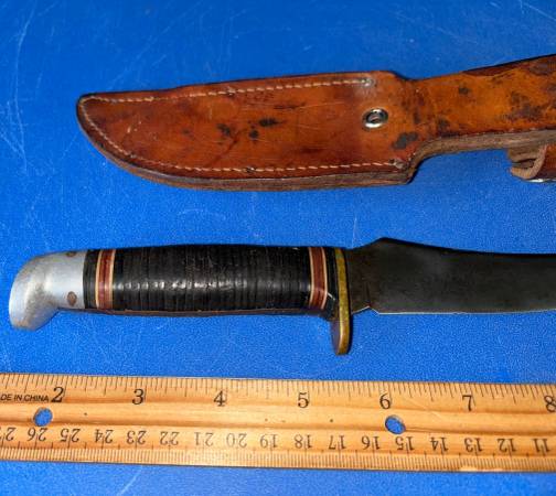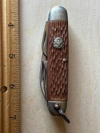 Everything you see in the pictures for $75 for all three knives pictured. Great Christmas presents for that special someone who enjoys fine knives. All three of these fine knives were manufactured in the USA. Kershaw USA Auto model #7550 CPM 154, Western USA fixed blade boot knife model #L39 with sheath and an early Camillus New York USA Boy Scout knife. If interested call show contact info