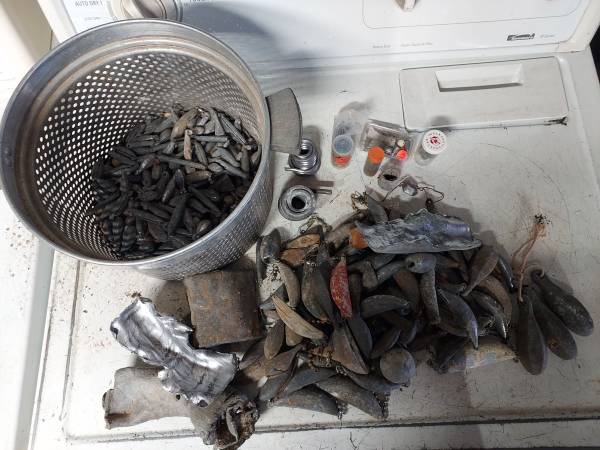 About 98% of this 50 pounds of lead are usable sinkers and the rest is scrap lead. $80