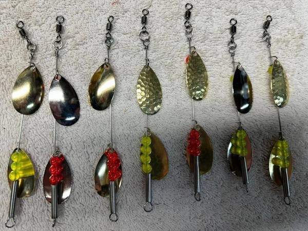 Hand made Indiana Spinners.. Many bead color options just ask! Lures, Spinners, Trolling. Trout, Blueback, Steelhead, Kokanee, Rivers and Lakes. $3.00 each. Can ship for the cost of shipping.