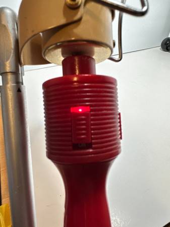 * power cord with GFCI safety plug and warning tag attached