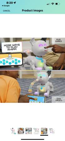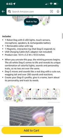 Like new/used only a few times Uses an app to operate No batteries/ charge port on bottom of dog A more detailed description is in the pictures