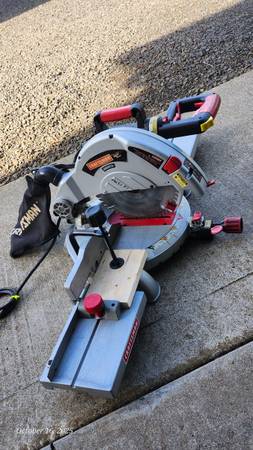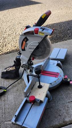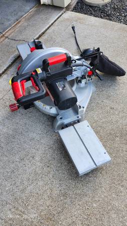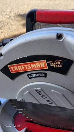 Nice 10 inch CRAFTSMAN miter saw Comes with both right and left work surface extensions, work hold down attachment and cut length stop block. Also has a working lazer cut guideline. Cuts very...