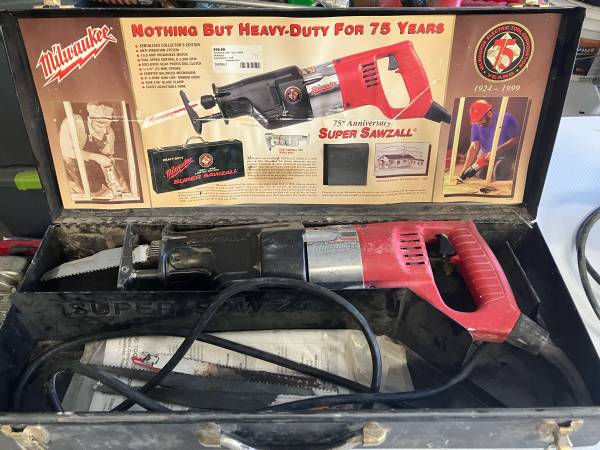 Millwaukie saz all, 40.00 skill Saw with cement siding blade & guide square 10.00, Roto zip Sheetrock cutting tool 15.00