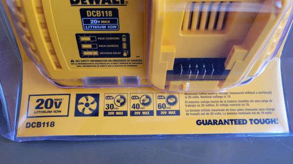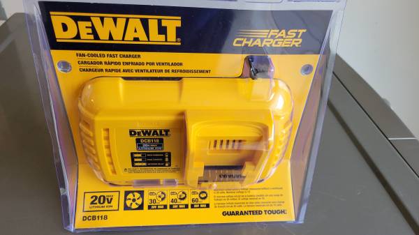 Dewalt 20V Max Lithium Fast Battery Charger New in packaging. DCB118 $30.00 cash Dewalt, milwaukee, ridgid, mikita, 18v, 20 volt, construction, repair,