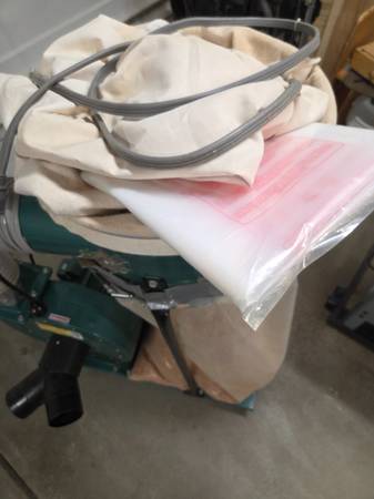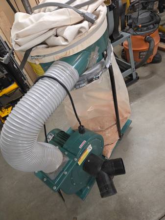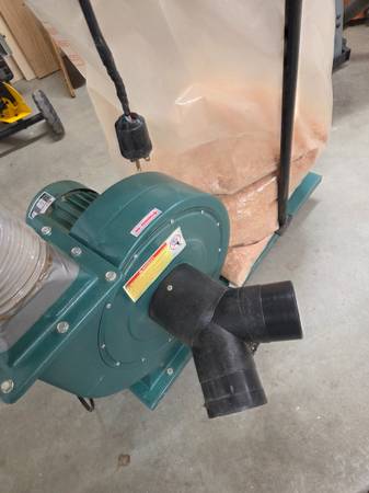 Grizzly Dust Collector: 2hp 110v/220v (wired for 220V). The unit come with and extra power cable/adaptor, extra clear bags extra/original top filter bag. Includes original Owners Manual.