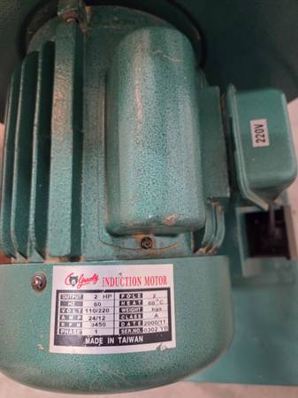 Motor: 2 HP, 220V, single-phase, 3450 RPM