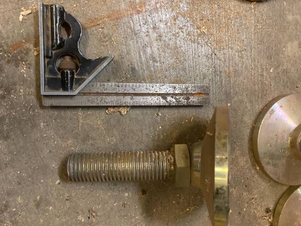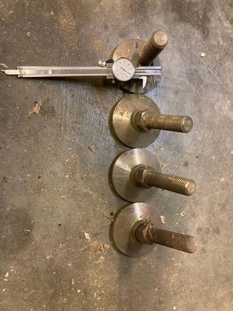 Super heavy duty feet for machines or tables. 1" threaded shafts, ball foot attachment to accommodate non-flat surfaces, weigh 3 lb 3 oz each. Rated for 18,000 lb. New cost $43 each: https://www.carrlane.com/product/leveling-feet/stud-leveling-feet/stud-leveling-feet/stud-leveling-feet-steel-zinc-plated/cl-16-slf