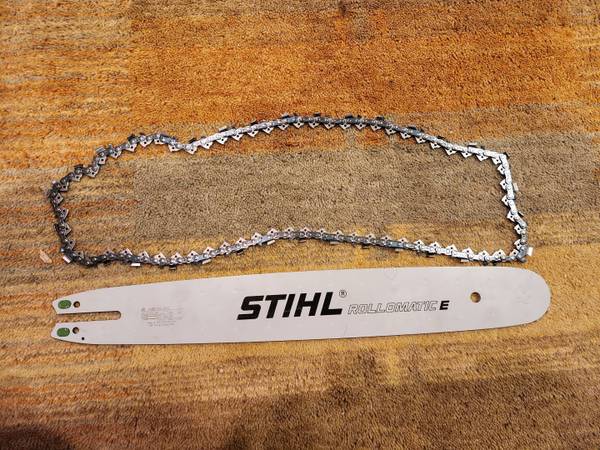 Never used Stihl bar and chain. Chain fits bar. $40 for both Had it for my MS251 chainsaw but don't need anymore. Details: 18" Stihl bar. # 3005 008 4717 .325" pitch 0.063" gauge 68 drive links...