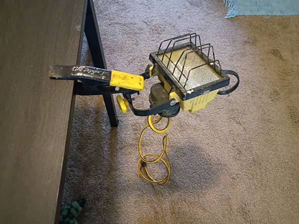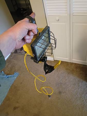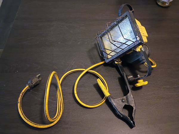 Flood light. All weather. Hang or clip. Uses 4z21 bulbs. Loaned someone money, they paid me back in tools. I don't need more tools so I'm here to sell.