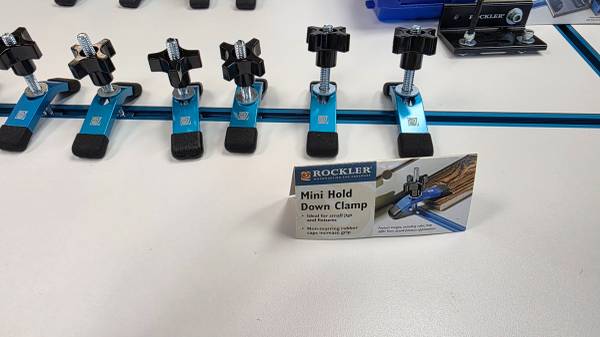 Only used a handful of times for a non-woodworking project is a Rockler 28"x40" T-Track tabletop with 17 Rockler Mini-Hold Down Clamps, one Rockler Long Stop and two Rockler Bolt Down Clamps.