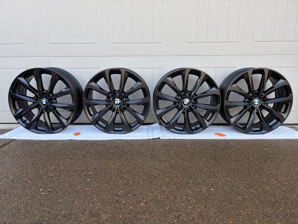 19”x7.5, bolt pattern 112, off set 32mm, off of 2018 - 2021 x3 and x4 simi flat black powder coat, new last year TPMS flawless