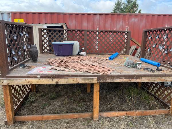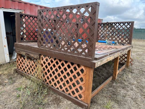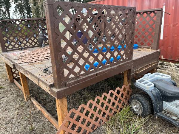 deck. free 8 feet x 10 feet wide and 3 feet tall. you load and haul. was used with an rv. includes stairs. if interested respond with phone number and when you can pick it up.
