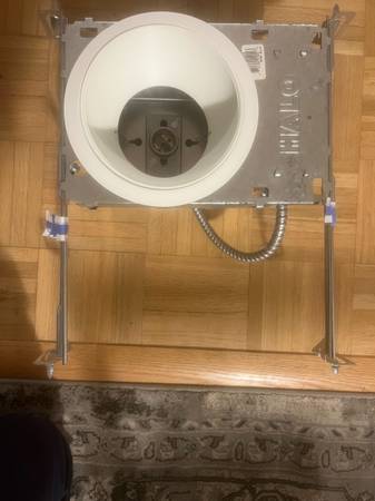Used but in perfect condition, 12 standard size (6") Halo brand light cans generally used for new construction ceiling light fixtures, together with the 'baffles' that enclose the light bulb. We swapped the regular bulbs out for thin LED's and no longer need the can fixtures.