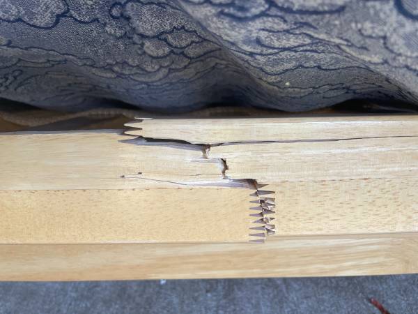 Free futon frame with mattress. The futon frame has a break in the front but still works fine. The mattress is in good condition. You can have one or both.