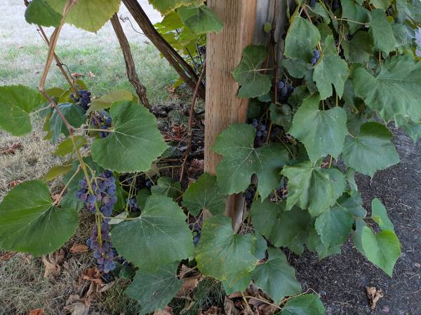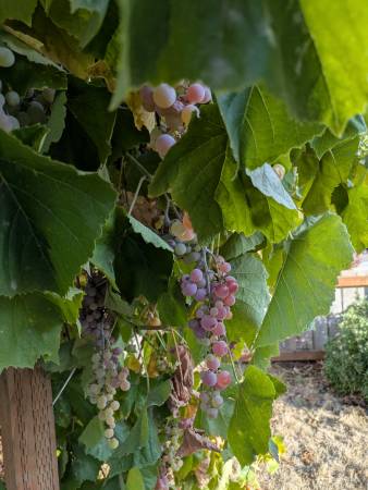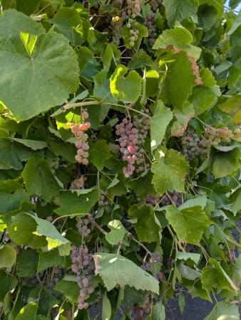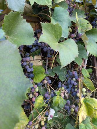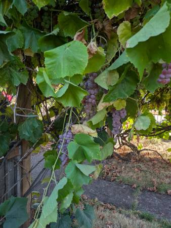 Free grapes for the picking!! Looking just about ripe. Concord grapes, and another type of grape. Perfect for make juice, wine, jam, jelly, etc. Feel free to come into the front yard to access the grapes. No need to ask, but happy to help if you would like. Take as many bundles as you want.